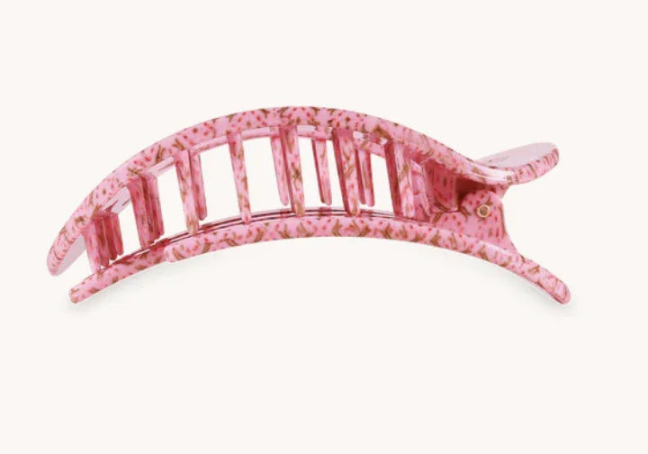 Lay flat and relax with the Berry Cozy Small Flat Round Hair Clip in Pink. The TELETIES x Laura Park Holiday Collaboration features bold, playful designs that combine Laura’s vibrant art with TELETIES signature function—perfect for any look!