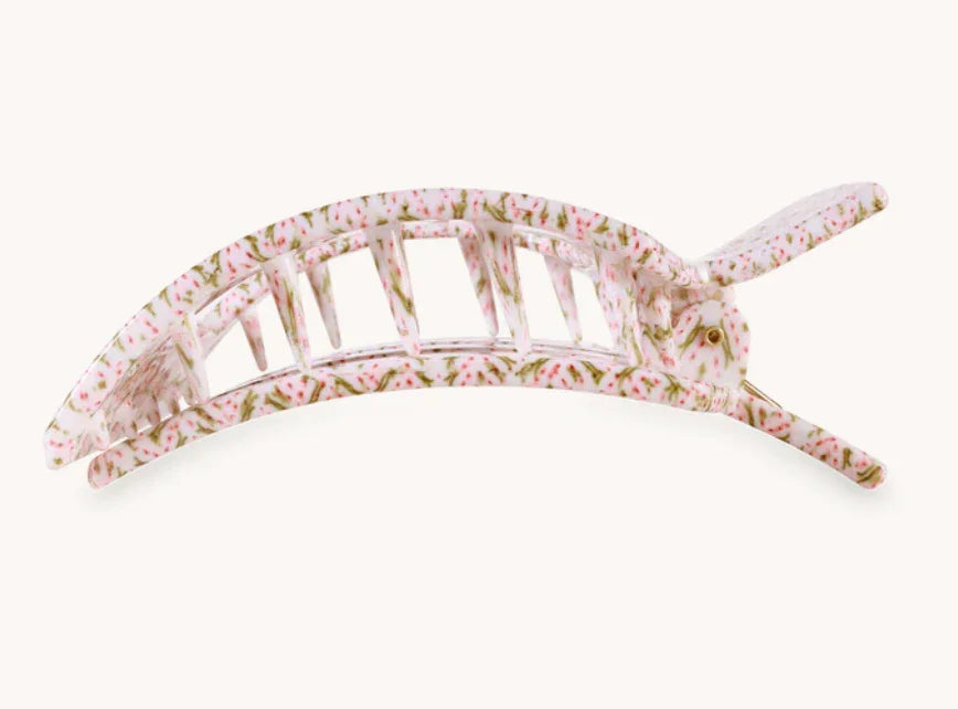 Lay flat and relax with the Pine and Pearl Large Flat Square Hair Clip in White and Pink. The TELETIES x Laura Park Holiday Collaboration features bold, playful designs that combine Laura’s vibrant art with TELETIES signature function—perfect for any look!