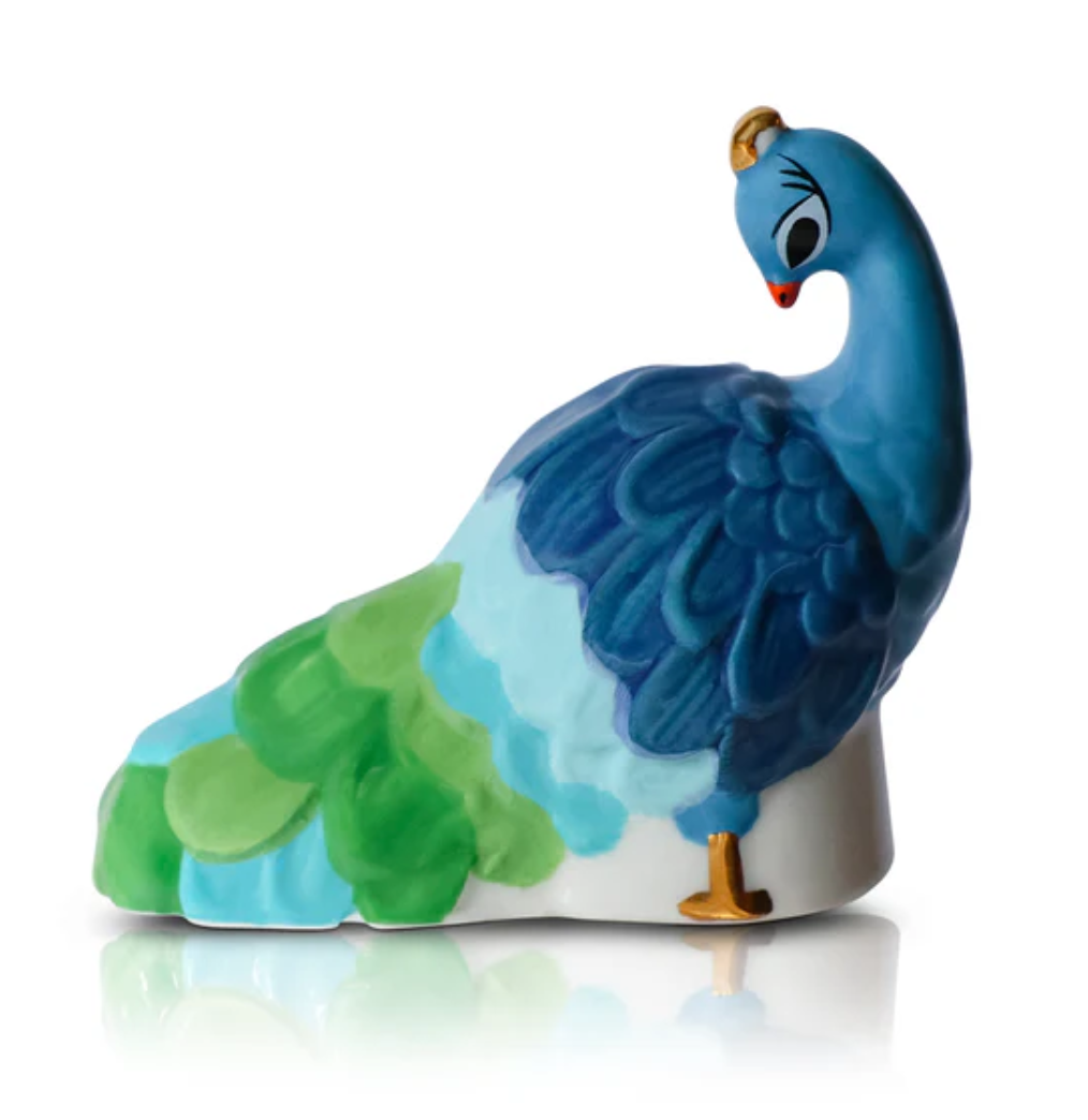 Make a bold, elegant statement at your next gathering with the Fancy Feathers peacock mini. This intricate ceramic piece captures the regal beauty of a peacock in full bloom, featuring vibrant shades of turquoise, emerald, and royal blue.
