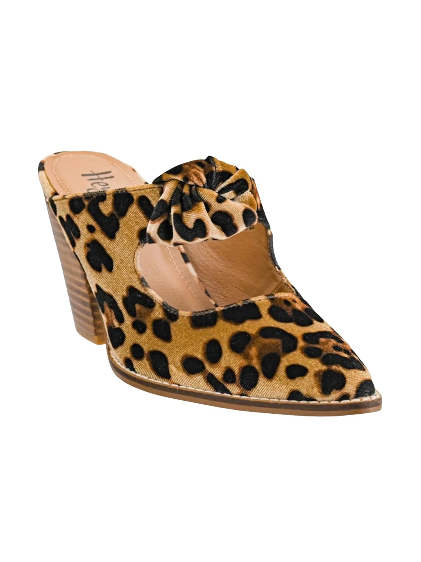 Step out in style in the Knot Gonna Happen Heeled Mules by Corkys. Featuring a bold animal print, pointed toe, cutout vamp, and flirty knot detail, these heels are perfect for making a statement—whether you're heading to brunch or a night out.