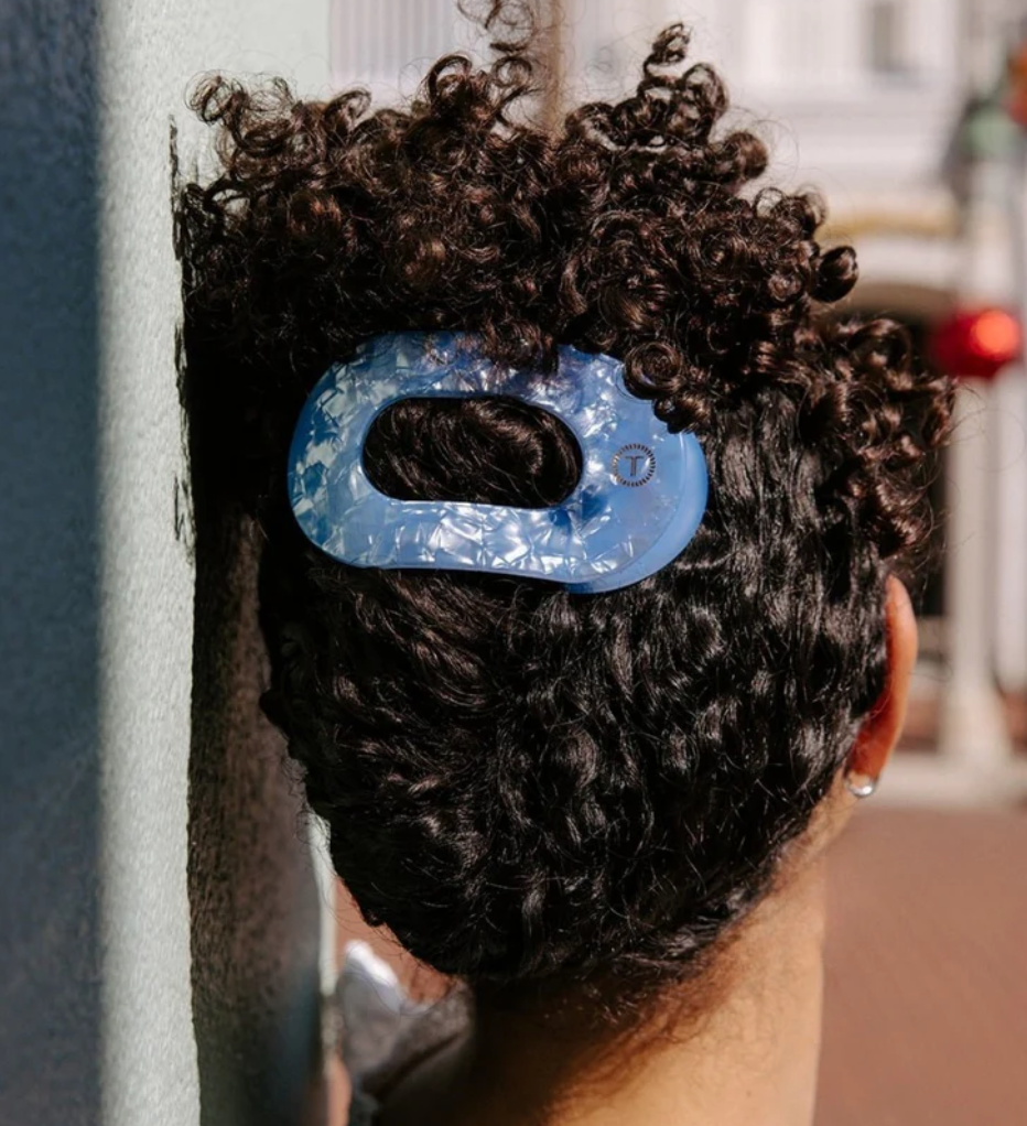 Lay flat and relax with the new TELETIES Blue Lagoon Large Flat Round Hair Clip in Blue. This hair clip is designed to allow you to lay back flat, do yoga, or sit comfortably in a seat with a headrest, and it is made with the same material that is nearly unbreakable.