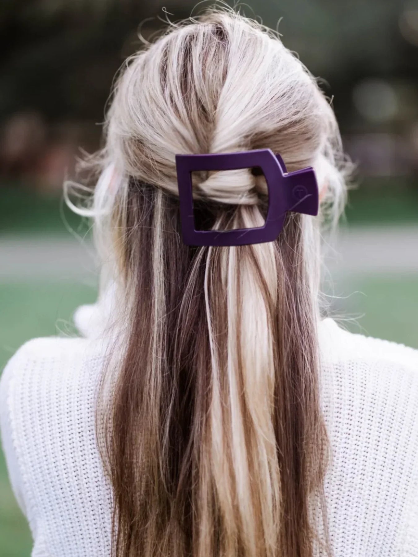 Lay flat and relax with the new TELETIES Burgundy Bliss Large Flat Square Hair Clip in Red. This hair clip is designed to allow you to lay back flat, do yoga, or sit comfortably in a seat with a headrest, and it is made with the same material that is nearly unbreakable.
