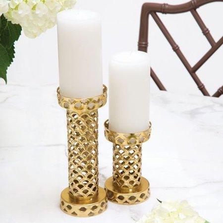 These large gold geometric candle holders for pillar candles have a modern design that is sure to make a statement on a mantel or entry table. They would also make a great housewarming gift or wedding gift!