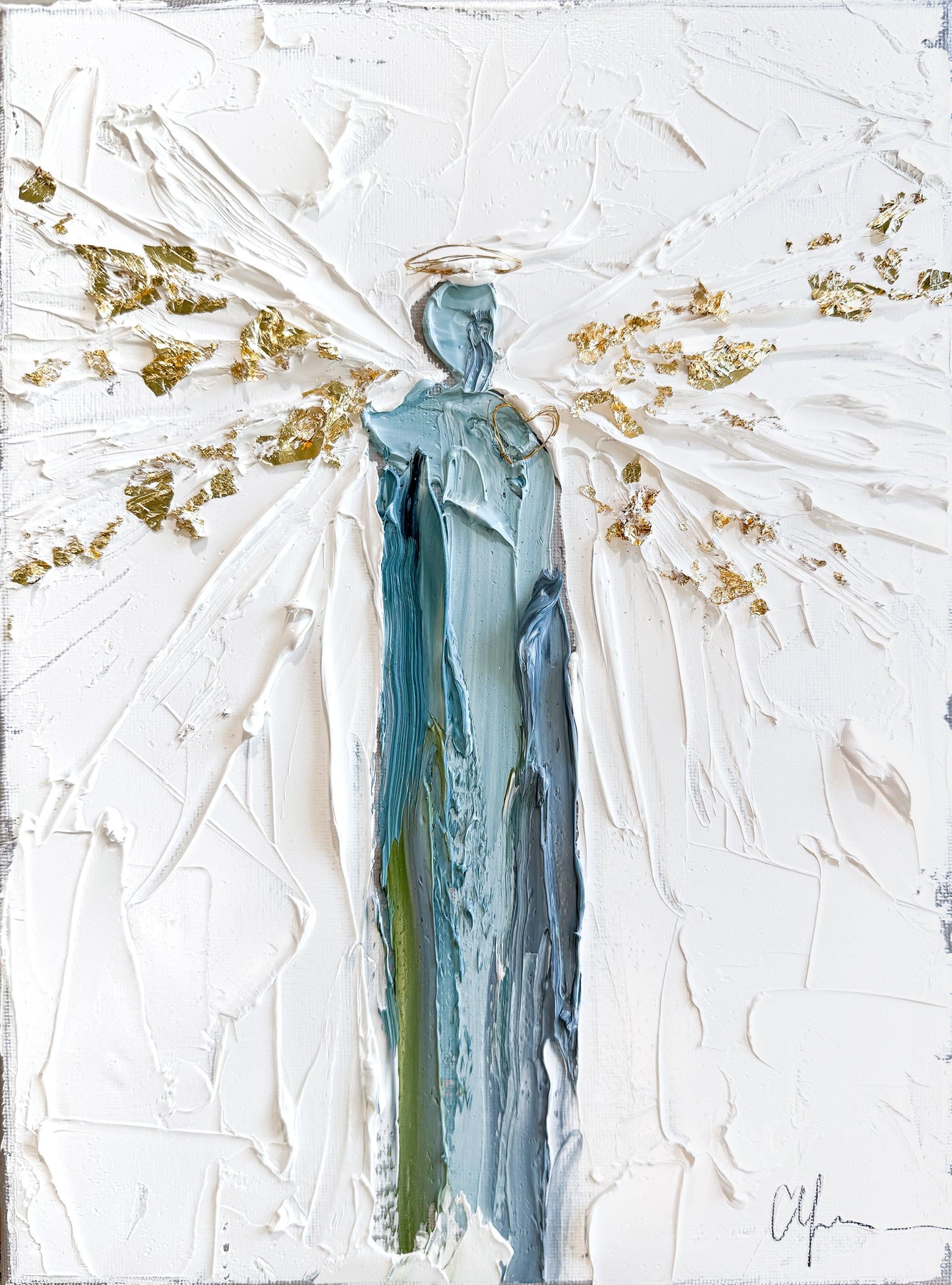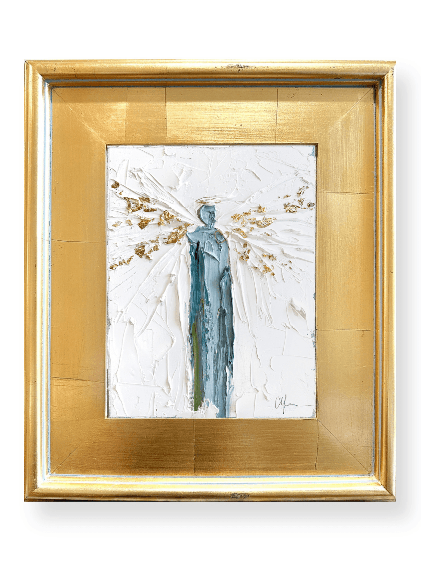 Finish:  Edges Painted, Wired, and Framed in a wood gold leaf antiqued plein air frame.