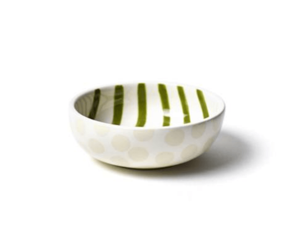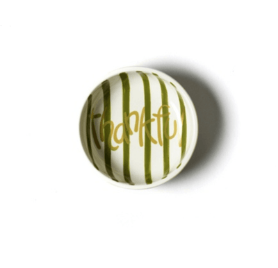 Every Coton Colors piece comes to life through the work of our Design Team in Tallahassee, Florida. From the shape fashioned from a ball of clay to the colors, patterns, and textures, we artfully design our products from start to finish. Earthy tones and painterly lines give the contemporary design of the Thankful and Grateful Dipping Bowls a cozy warm look and feel. The petite bowls feature a lovely mix of stripes and dots. Elevate casual entertaining with this small bowl perfectly sized for homemade sauces, fruit jams and favorite condiments.