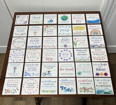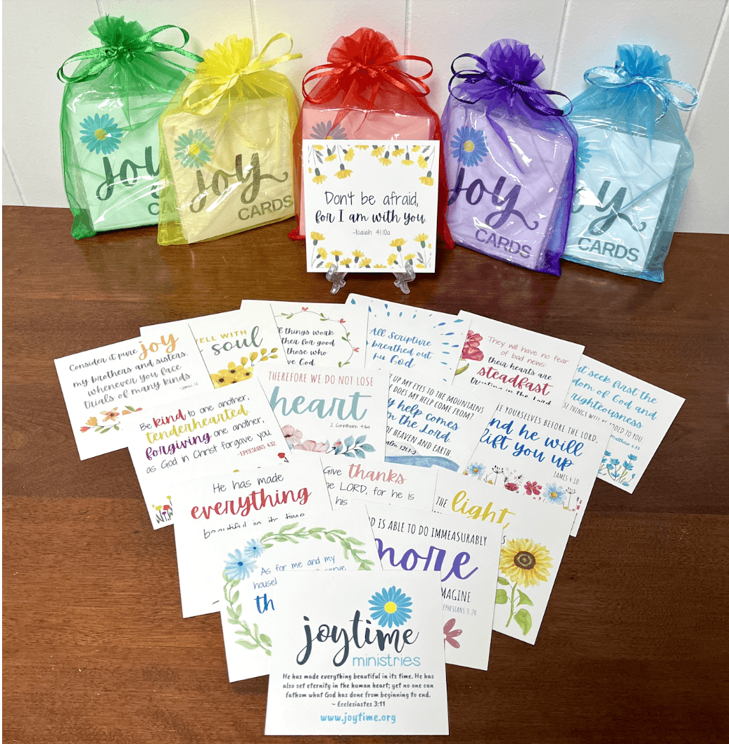 "Joy Cards" make a perfect gift! Joy Cards are 3.5" x 3.5" glossy cards that come with a small easel and cute storage bag. Each set contains 52 unique Joy Cards designed by Dr. Joy Greene with scriptures and encouraging quotes.