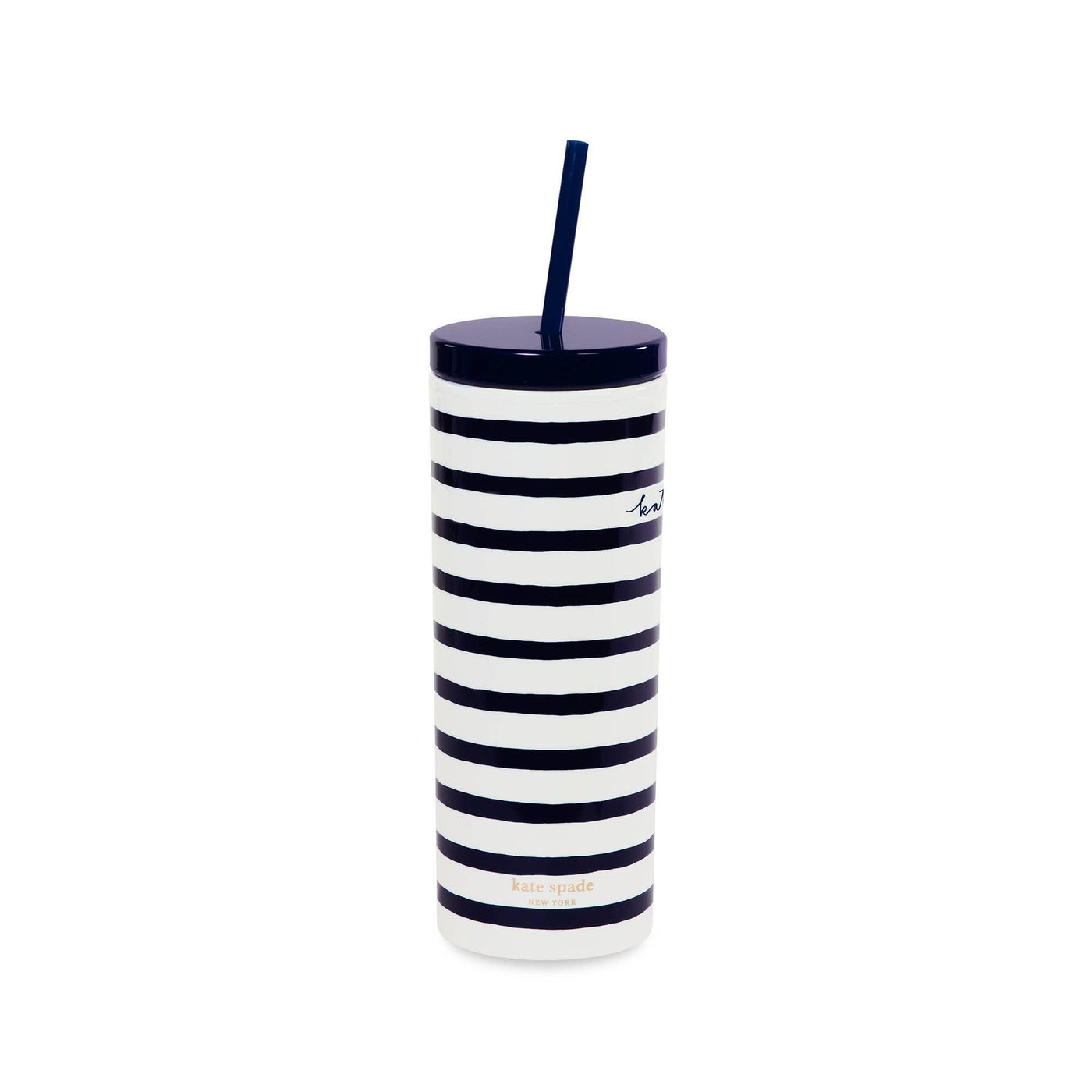 Navy Painted Stripe Acrylic Tumbler with Straw | Kate Spade