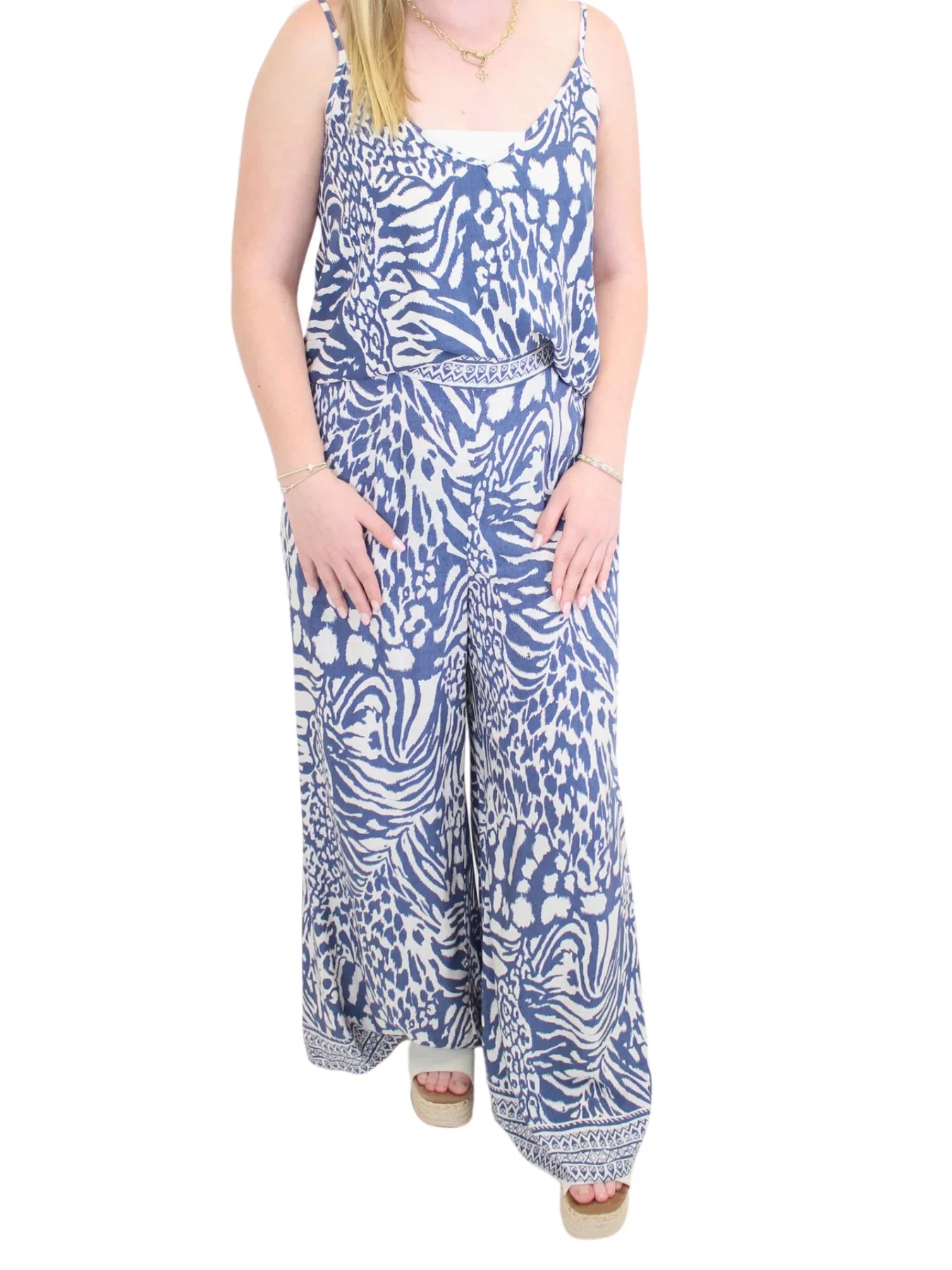 The Maggy Animal Print Pants in Denim Blue offer a chic and playful addition to your wardrobe. These pants feature a flowy palazzo design with an elasticized waist for optimal comfort and style. The animal print with a geo print border adds a unique touch to this must-have piece. Pair with the matching Maggy Cami for a complete look! Made from lightweight, breathable material, these pants are perfect for any occasion and ensure all-day comfort!