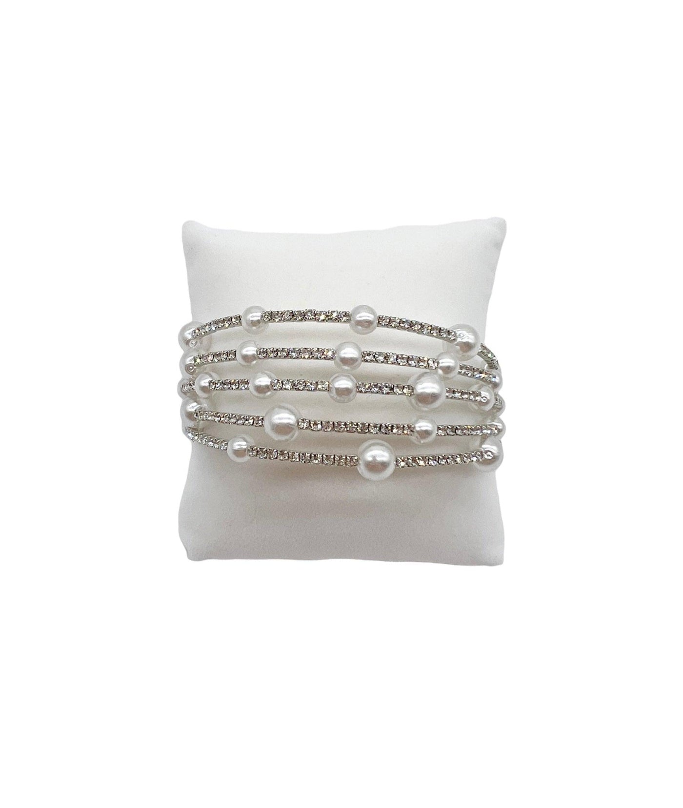 PEARL STATIONED 5 CRYSTAL ROW CUFF