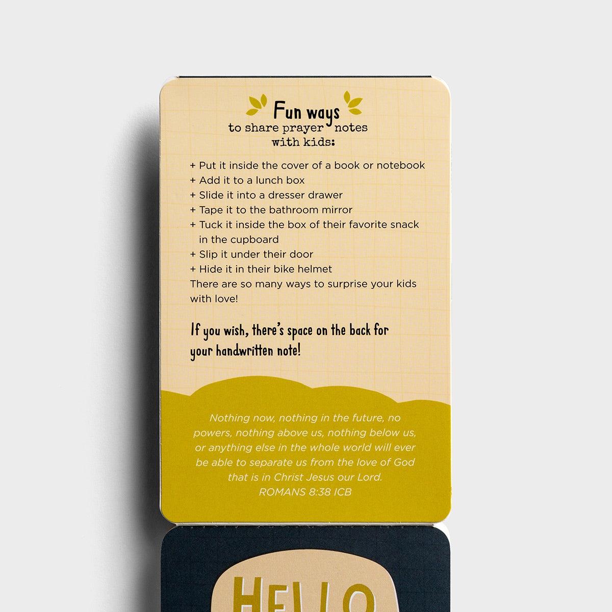 Surprising your child with an encouraging note can turn their whole day around. Prayers to Share: 100 Empowering Notes for Kids provides 100 tear-out notes, each including a prayer, Scripture, and a loving, just-so-you-know affirmation statement. With space on the back to write a personal note, parents, grandparents (or anyone wanting to influence the next generation) can throw these in a lunch box, slide them in a dresser drawer, tape them to the bathroom mirror, hide them in a backpack, or sneak them in a gym bag. And just think: with each note, you'll be planting little seeds of faith as your kiddos will start to see the amazing power of prayer unfold in front of their very eyes.