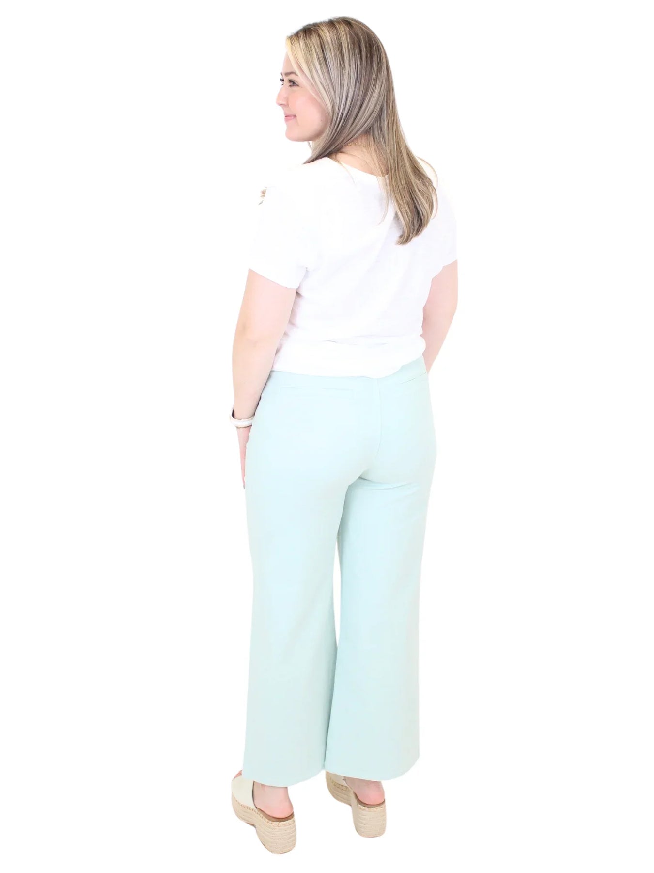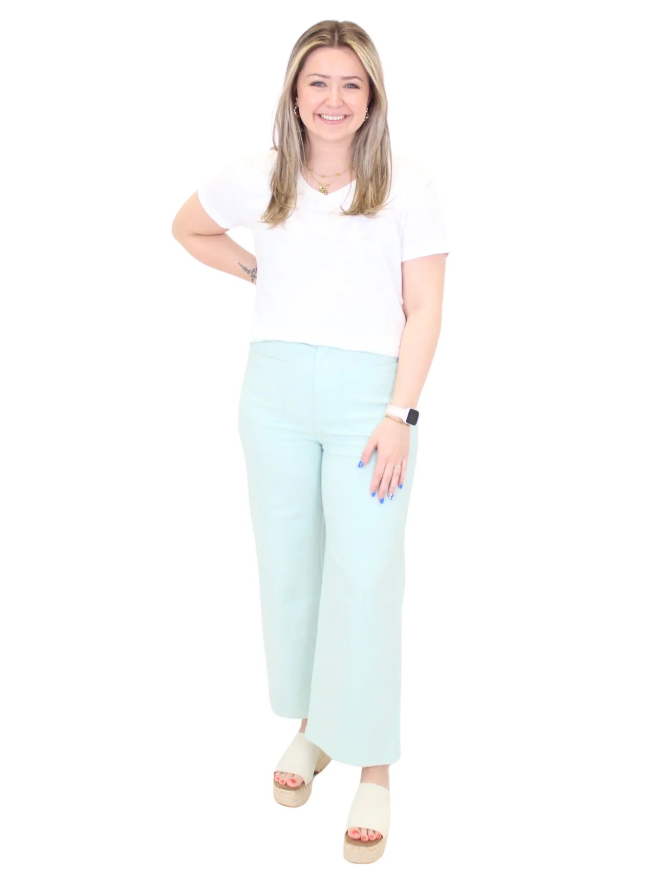 Effortlessly chic and endlessly versatile, our Wide Leg Cropped Trousers in Seafoam are a must-have for any wardrobe. Designed with a flattering high rise waist and combining the wide leg trend with the cropped length trend, these pants offer a polished yet relaxed look perfect for work, weekends, and everything in between. The cropped length adds a modern touch, making them easy to pair with your favorite heels, flats, or sneakers. Crafted from a soft, breathable fabric with just the right amount of stretch, they provide all-day comfort without compromising on style.